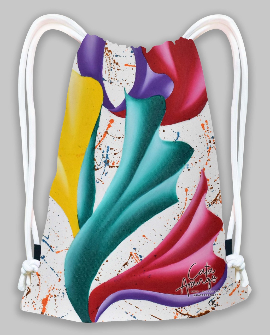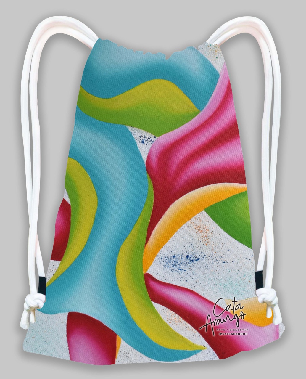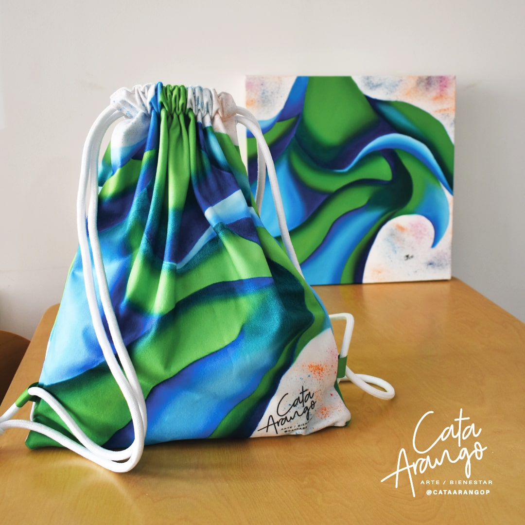 - Materiales: Bolsillo interno con cierre. Banda elástica interna para llevar tu termo. Cordón grueso. Tela suave con textura de durazno.